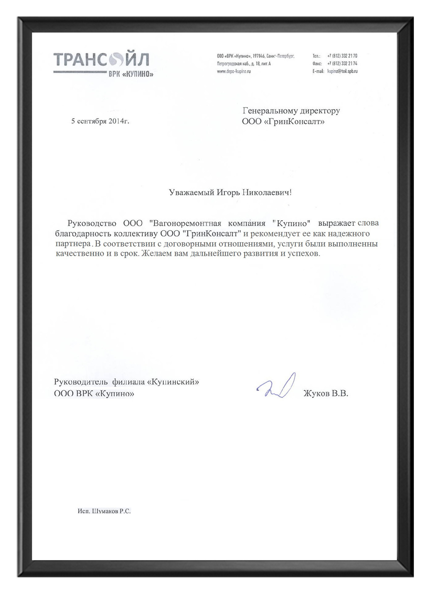 Мы оформим договор и вышлем вам на согласование